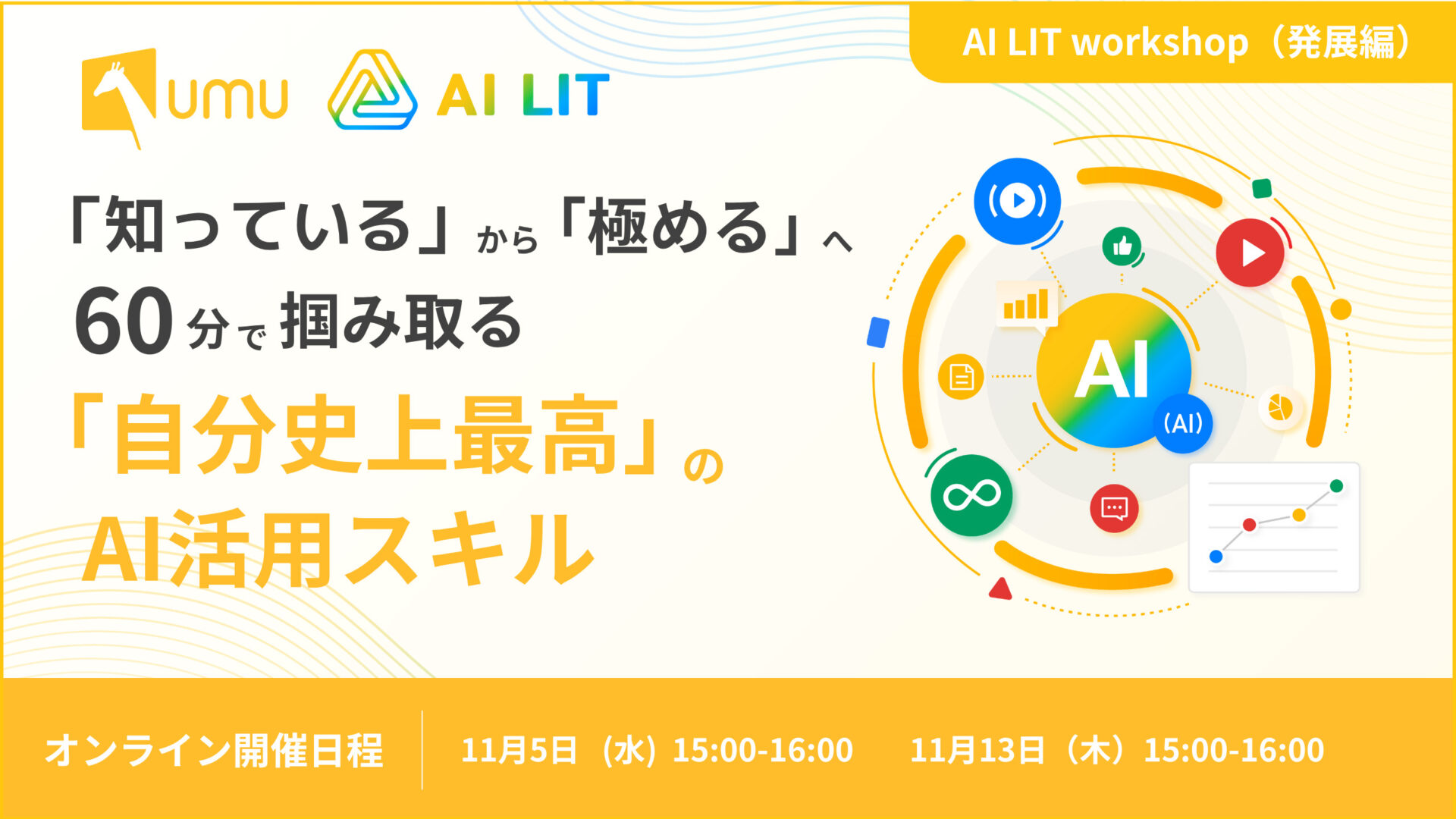 本セミナーは、そうした不安や疑問を解消し、AI時代に不可欠な基礎知識とスキルを体系的に学ぶための講座です。UMUが200以上の学術論文や業界レポートから得た知見を基に開発した 、AIを正しく理解し、効果的に活用するための「最初の第一歩」を、分かりやすく丁寧にガイドします。