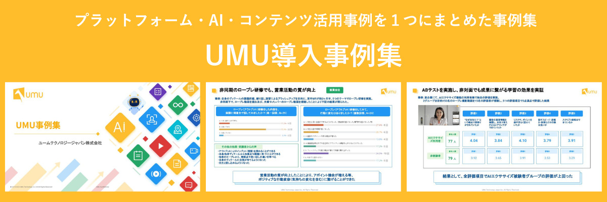 AIで企業の業績を向上させるためのUMUが提供しているサービスの特徴や実績、実現できることがわかる資料です。