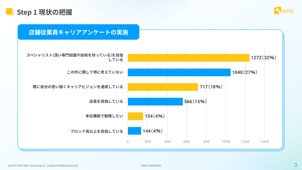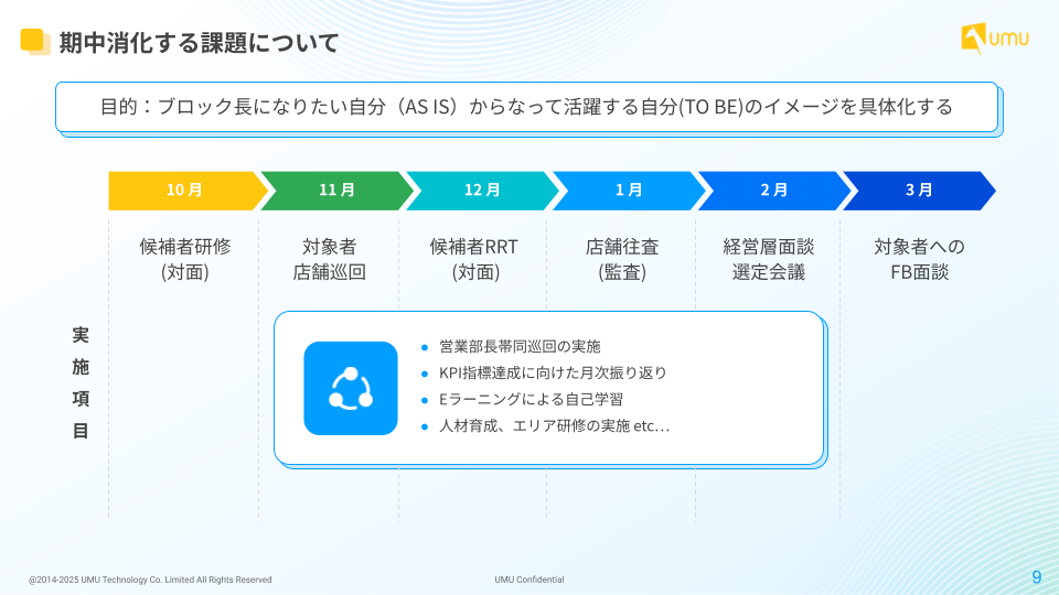 この変革を成功に導くため、自ら手を挙げた候補者が「なりたい」から「なれる」存在へと成長を遂げるための新たなプログラムを設計。その中核に、AIを活用したオンライン学習プラットフォーム「UMU」を据えました。