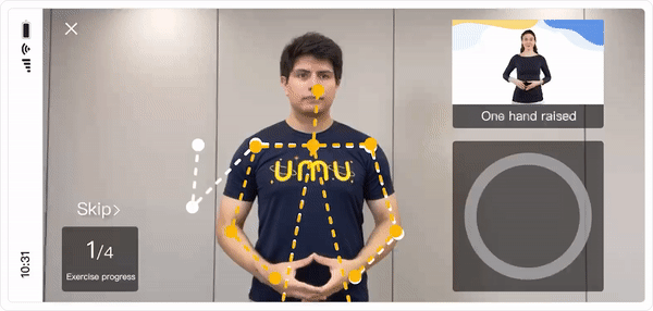 Pushing the limits of software volume and computing speed, UMU’s self-developed computer vision technology is capable of recognizing 30 actions per second to calculate in real time the match rate between your gesture and the standard gesture, so as to better guide learners in deliberate practice with smooth and objective feedback.