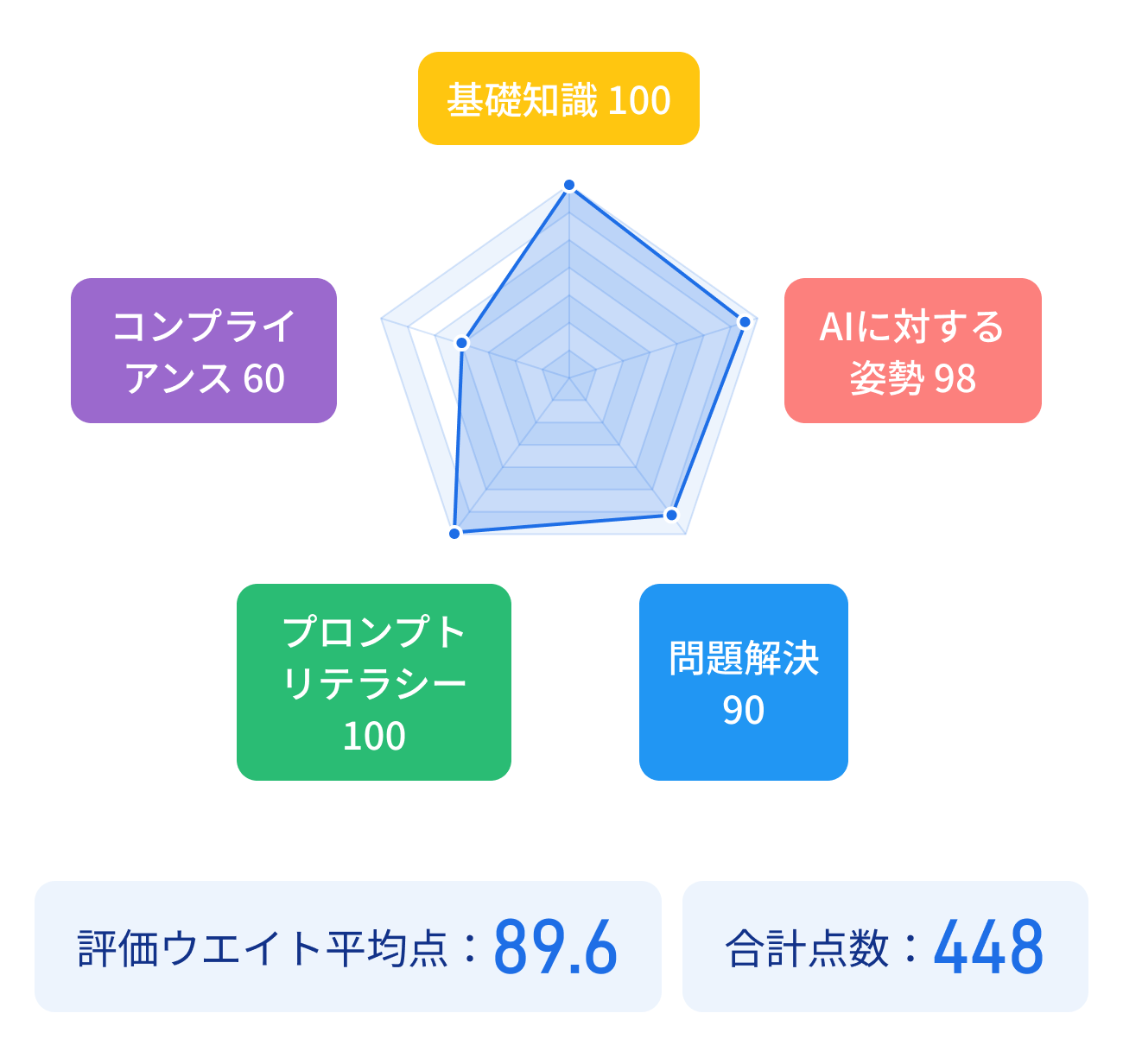 5つの評価軸で、人材のAIリテラシーを多角的に分析